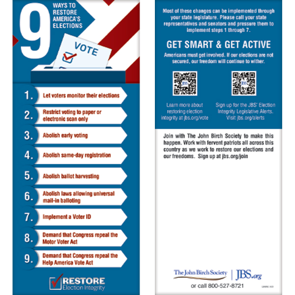 Americans must get involved. If our elections are not secured, our freedom will continue to wither. (Sold in packs of 25)