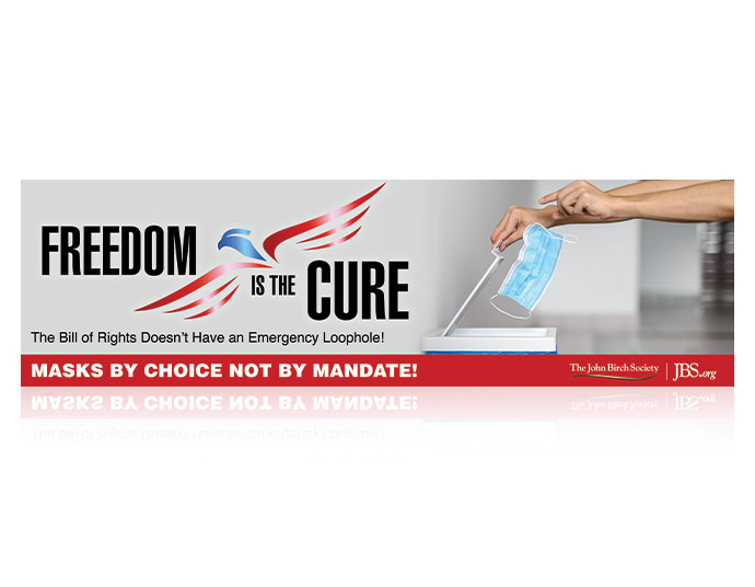 Use this eye-catching banner as a back-drop for your booth to promote the JBS campaign “Freedom is the Cure.”