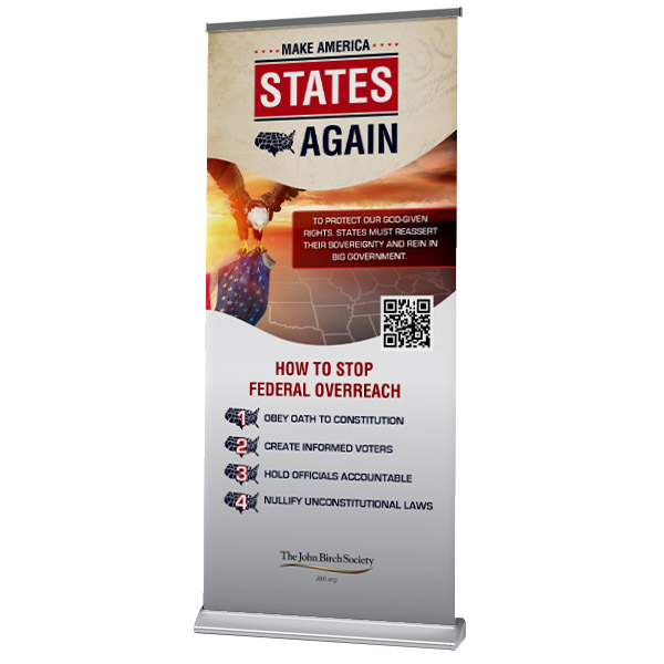 Use this eye-catching banner for your booth to attract visitors to learn more about making America States Again.