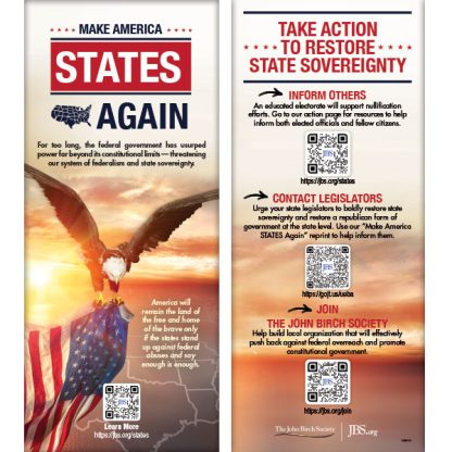 Use this slim jim to inform your state legislators and fellow citizens about state sovereignty and what they can do to reassert it. (Sold in packs of 25, 2025ed)