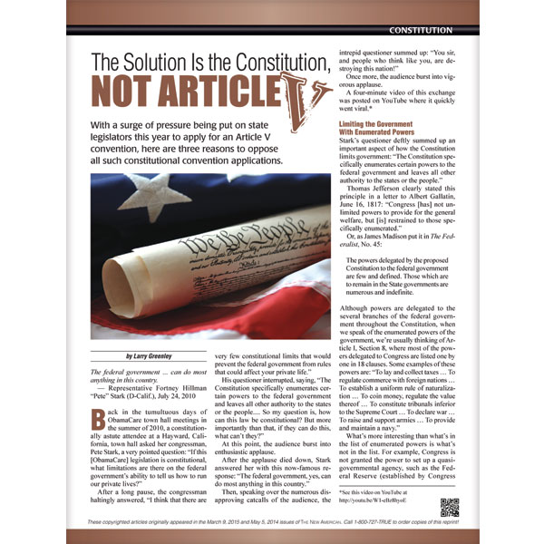 The Solution Is the Constitution, NOT ARTICLE V reprint